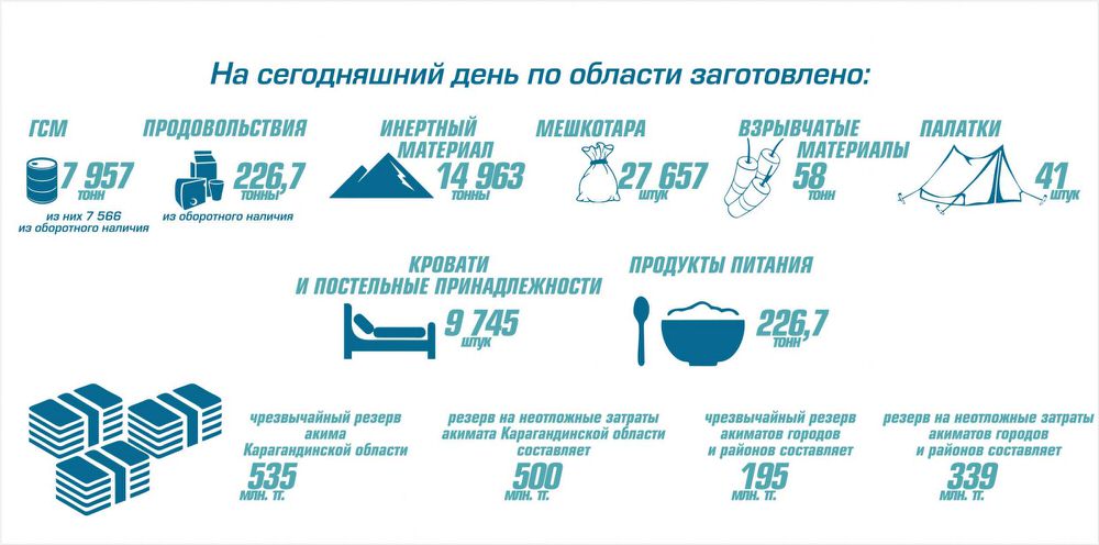 Отметим, что 16 февраля 2016 года группа сотрудников Комитета по чрезвычайным ситуациям МВД РК во главе с заместителем министра внутренних дел РК Владимиром Божко посетила Карагандинскую область с целью оценки готовности региона к паводковой ситуации. А чуть позже, 22 февраля, под председательством акима области Нурмухамбета Абдибекова прошло совещание на эту же тему. Так, из официальных данных следует, что на сегодня в регионе имеется 220 гидротехнических сооружений: из них в республиканской собственности находятся 8, в коммунальной – 20, в городской или районной – 176, в частной – 16. Все собственники заявили о готовности к паводку.