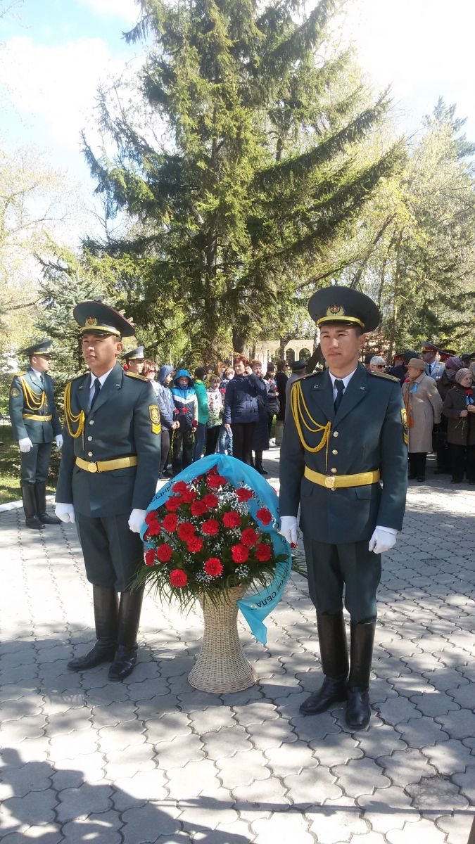 По традиции, в преддверии Дня Победы состоялась церемония возложения цветов и венков к памятнику воинов 314-й стрелковой Кингисеппской ордена Кутузова дивизии. Она была сформирована в июле 1941 года в Петропавловске. В первоначальный ее состав вошли 70% жителей Северо-Казахстанской области. В составе дивизии были 777 человек начальствующего состава, 1543 человека младшего начальствующего состава и 8611 рядовых. Воины 314-й стрелковой дивизии участвовали в обороне Ленинграда.