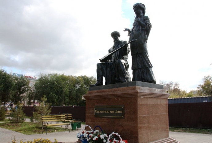 Памятник Курмангазы и Дине Нурпеисовой установили в Уральске