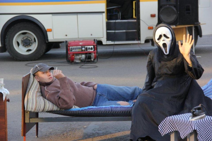 О правилах пожарной безопасности сотрудники ДЧС ВКО напомнили жителям Усть-Каменогорска в необычной форме. Курение в постели в нетрезвом виде влечет за собой смерть – это пытались донести пожарные населению, используя кровать, бутылки, сигареты и двух героев, один из которых был в обличии «смерти».