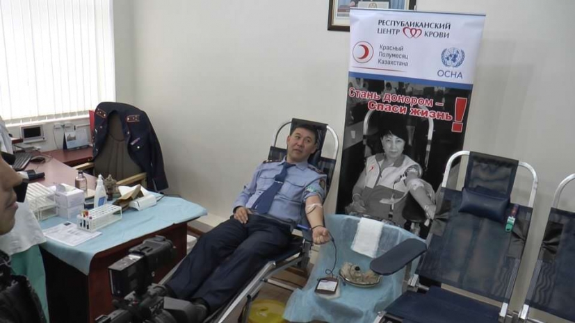 «С целью помочь людям, получившим увечья в ДТП, стражи порядка с раннего утра выстроились в очередь для сдачи крови. А работники республиканского центра крови, учитывая занятость полицейских, развернули свою мобильную лабораторию прямо в здании полицейского подразделения», сообщается в пресс-релизе ДВД Алматы.