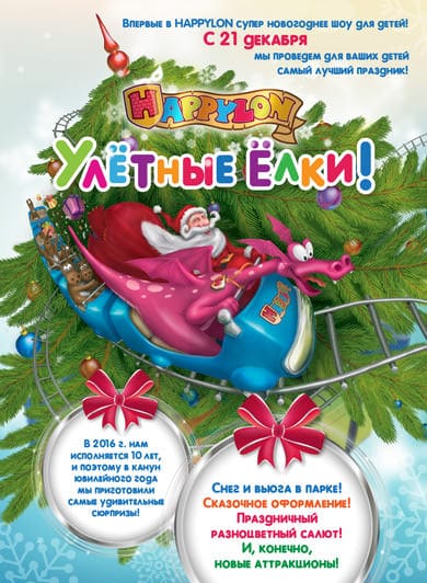 3. Happylon Travel Park в ТЦ «Мега» предлагает «суперновогоднее шоу для детей». На ваш выбор представлены два пакета: