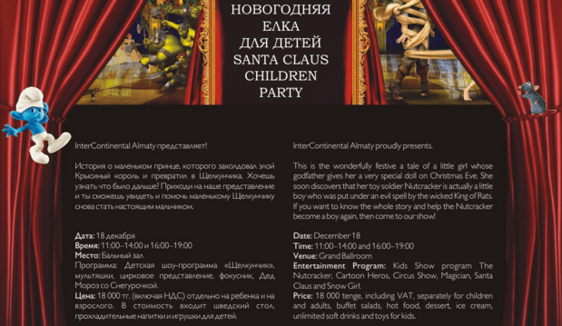 2. InterContinental Almaty предлагает новогоднюю елку для детей стоимостью 18 тысяч тенге на человека, которая пройдет 18 декабря.