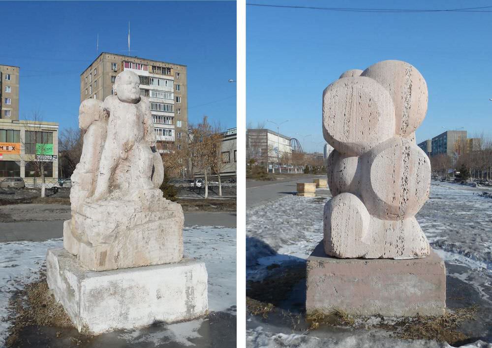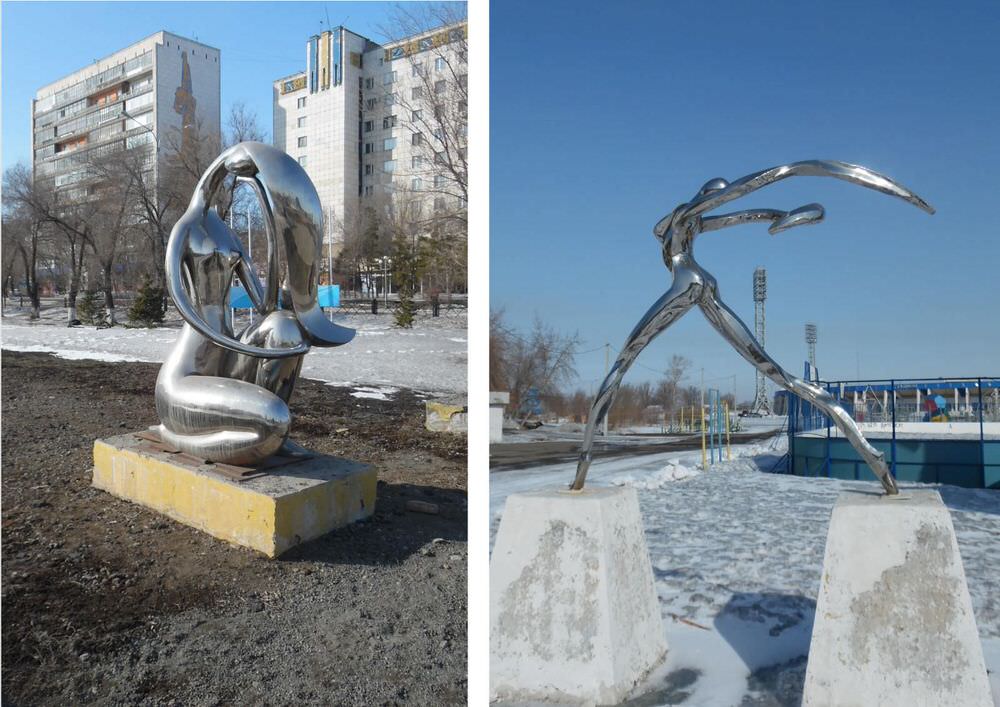 Славный город Темиртау знаменит не только тем, что он - город президента. И не только тем, что он – центр Казахстанской металлургии, кузница кадров и колыбель чемпионов. Но еще и тем, что в нем очень много МАФов – малых архитектурных форм: скульптур, фигур, вазонов, электрических деревьев, пластиковых остановок и т.п. И даже зеленая резиновая трава, которую сейчас в городе стелют вместо того, чтобы высаживать настоящие газоны, тоже МАФ. Мне из всех этих малых форм скульптура наиболее симпатична.