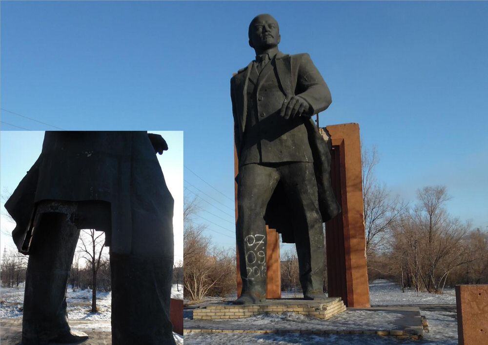 Вандализм как средство заработка. Ильич находится в непочетной ссылке в заброшенном сквере санитарно-защитной зоны «АрселорМиттал Темиртау», который еще несколько лет назад по поручению Президента должны были сделать «Парком трудовой славы». А поскольку он еще и медный, то пальтишко вождя мирового пролетариата периодически укорачивают любители обмена цветного металла на денежные знаки. И на всех пунктах приема цветмета в Темиртау «звучит сегодня «Ленин, Ленин, Ленин!».