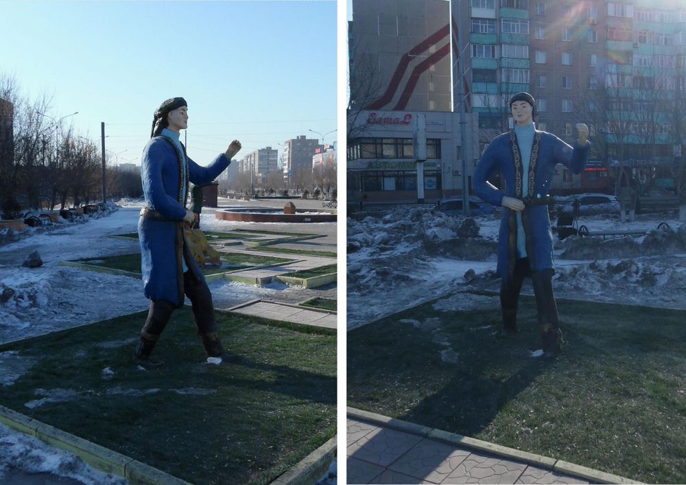 Скульптор, видимо не изучавший анатомию даже в школе, казахов представляет себе именно так: короткие ноги, длинное туловище, руки до колен, широкие плечи и маленькая голова. Да и к чему знания анатомии, если за «создание» 16 фигур ему было уплачено более 13 миллионов тенге бюджетных денег.