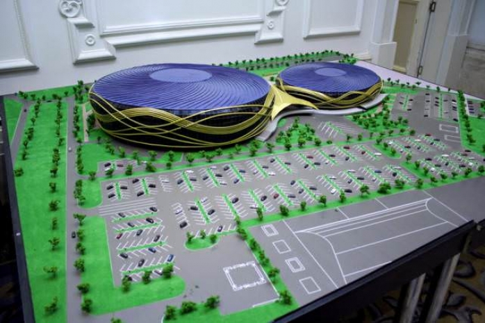 Помимо этого, уже завершены строительно-монтажные работы административного здания, бассейна и раскаточного катка 12-тысячной Ледовой арены, основной блок объекта будет сдан к 9 мая 2016 года, благоустройство территории будет завершено к 6 июля.