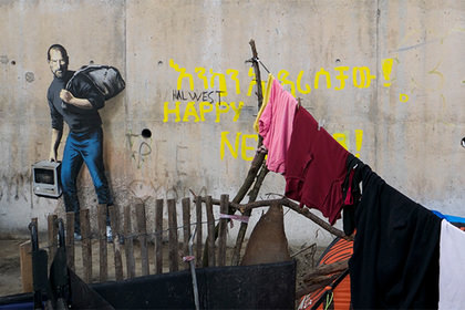 Британский уличный художник Бэнкси изобразил ушедшего из жизни главу корпорации Apple Стива Джобса в образе мигранта из Сирии. Новое граффити появилось на стене лагеря беженцев во французском Кале, пишет Lenta.ru.
