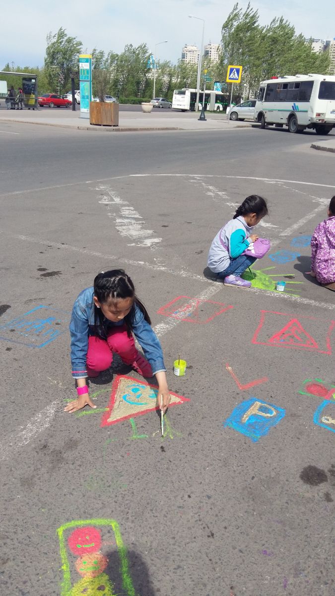 В Астане в рамках широкомасштабной республиканской акции «Безопасность детей на дороге», проходящей с 1 мая по 1 июня текущего года, Местной полицейской службой ДВД Астаны организован конкурс рисунков на асфальте с использованием люминесцентных красок, передает Total.kz со ссылкой на ведомство.