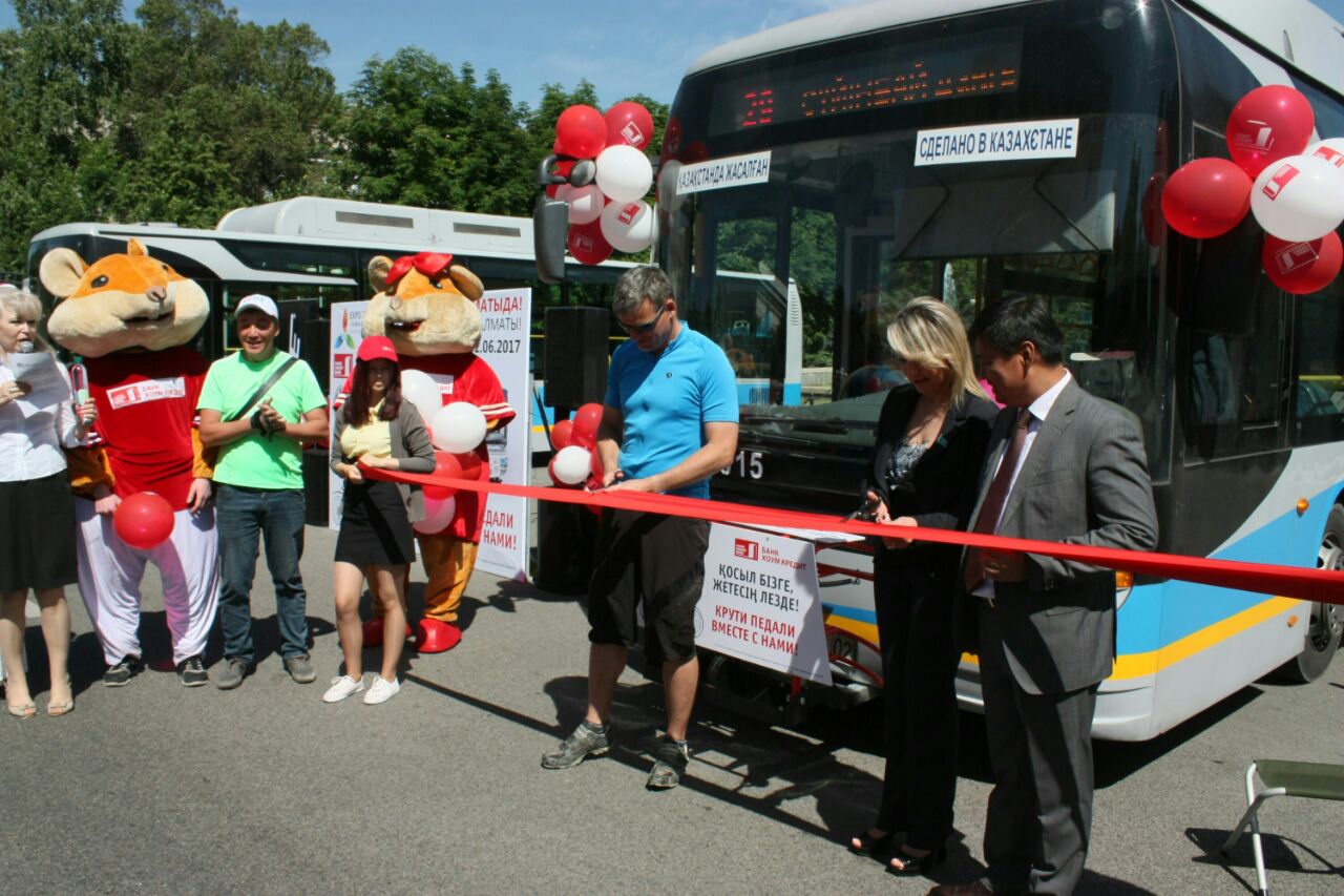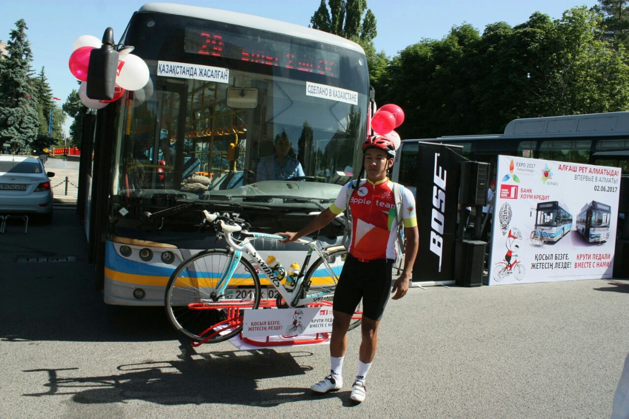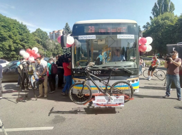 В Алматы появились первые в Казахстане автобусы с велосипедными креплениями. ФОТО