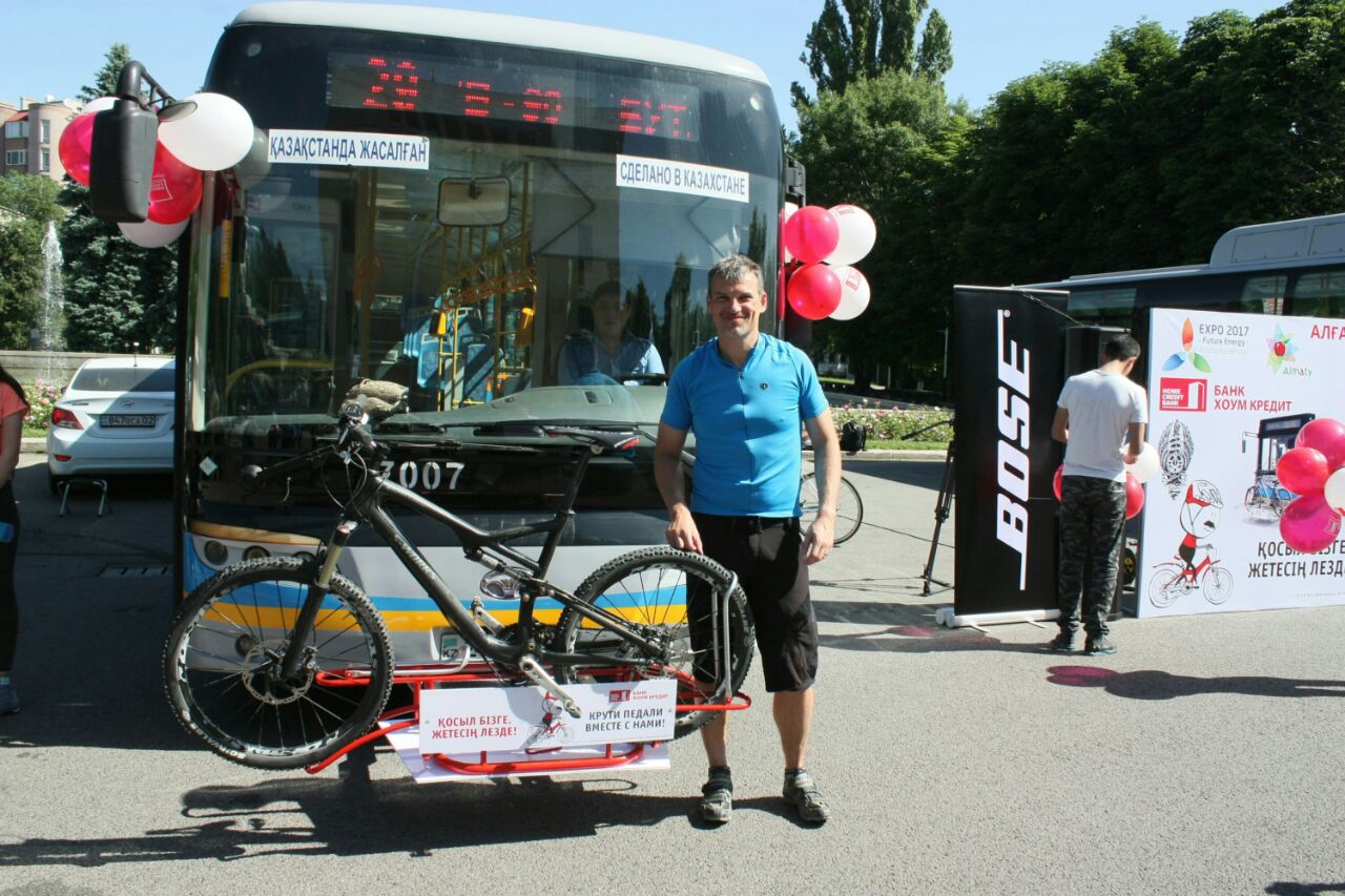 «В Алматы построено около 23 км велосипедных дорожек, однако многие не связаны между собой и велосипедистам приходится долго добираться из одного конца города в другой. Для решения данной проблемы мы запускаем этот проект. На данный момент велокрепления уже установлены на маршрутах №29 и №45. Первые автобусы с велосипедными креплениями были выбраны по принципу соединения отделенных спальных районов и нижней части города с центром, парками и районом Медео, где традиционно жители города и дети катаются на велосипедах. Таким образом, решается вопрос перевозки велосипедов общественным транспортом, где вход в салон с велосипедом сейчас затруднен, особенно когда автобус переполнен», – прокомментировал руководитель управления пассажирского транспорта и автомобильных дорог Максут Исахов.