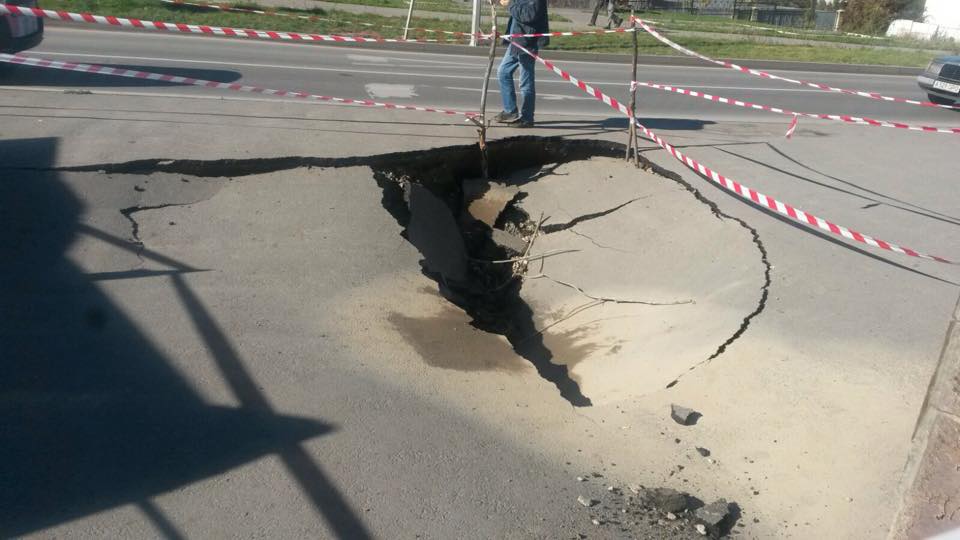 Диаметр ямы, по словам очевидцев, составляет 4-6 метров.