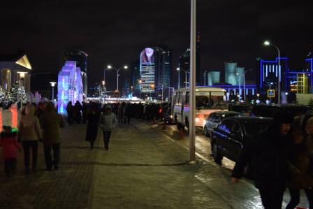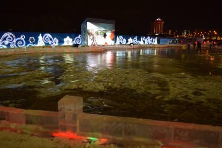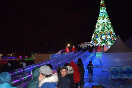 Ледовый городок в Астане открывали дважды. 1 декабря Нурсултан Назарбаев зажег огни на главной елке страны, которая расположена в центре ледового городка, однако для горожан она стала доступной спустя почти две недели.