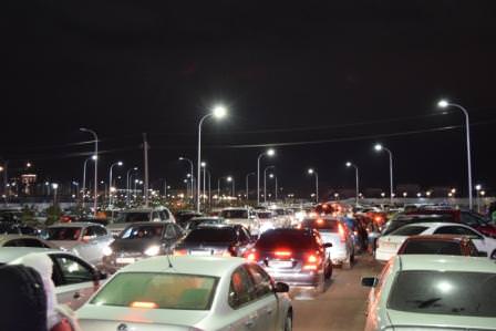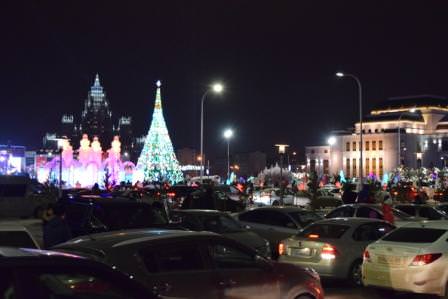 Выбирая место для ледяного городка, столичные власти не учли и без того перегруженного трафика у ТРЦ «Хан-Шатыр». Поэтому подъехать к городку практически невозможно.