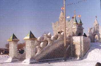На строительство городка было израсходовано более 9 тыс. куб. метров льда. Лед изготавливал специальный аппарат, снег - три снеговые пушки.