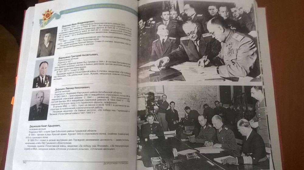 В этой книге имеется специальный раздел о пятнадцати Героях Советского Союза и двух полных кавалерах Ордена Славы. Стоит отметить, что всем присутствующим на мероприятии подарили книгу «Дорогами Победы».