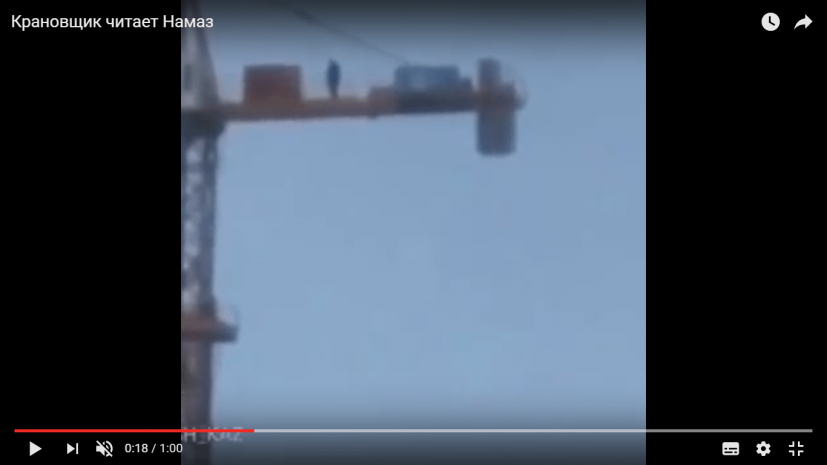 В сети появилось видео читающего намаз крановщика. ВИДЕО
