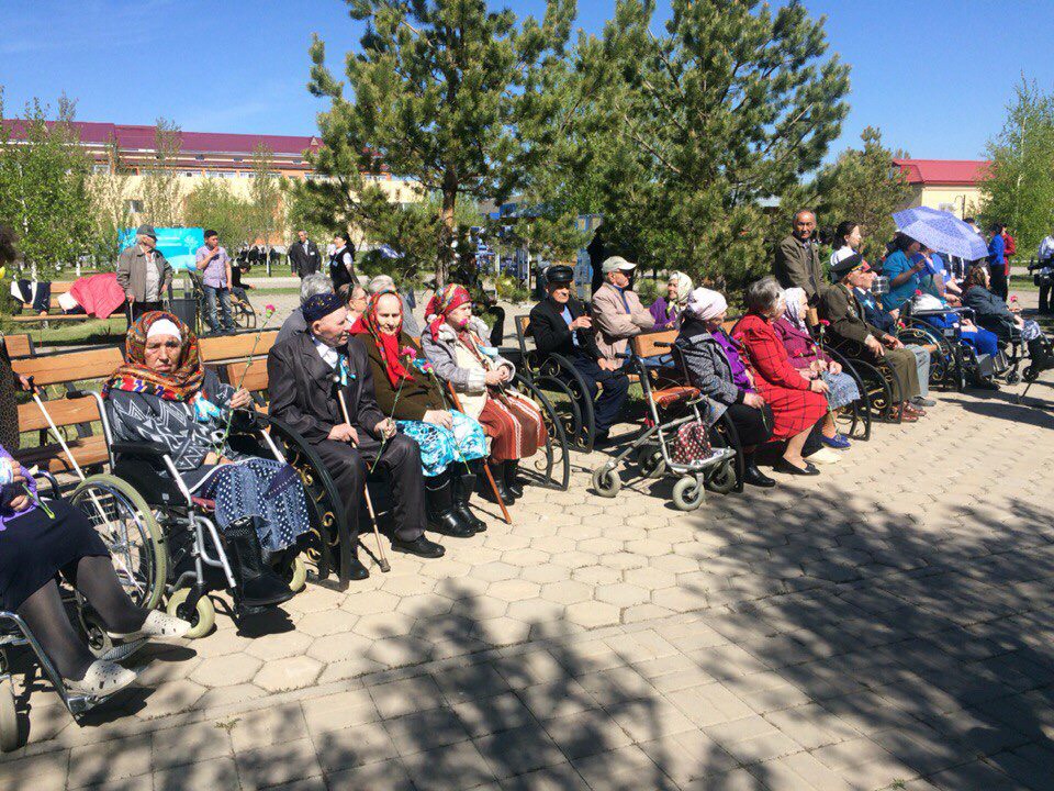 Тамара Дуйсенова вместе с ветеранами и тружениками тыла приняла участие в посадке саженцев на территории учреждения, а также посетила праздничный концерт. В завершение встречи министр пожелала ветеранам здоровья и долгих лет жизни, а также вручила памятные подарки. В частности, от министерства учреждению был подарен плазменный телевизор.