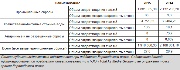 Таб. 1. Загрязнение водных ресурсов и сбросы загрязняющих веществ со сточными водами
