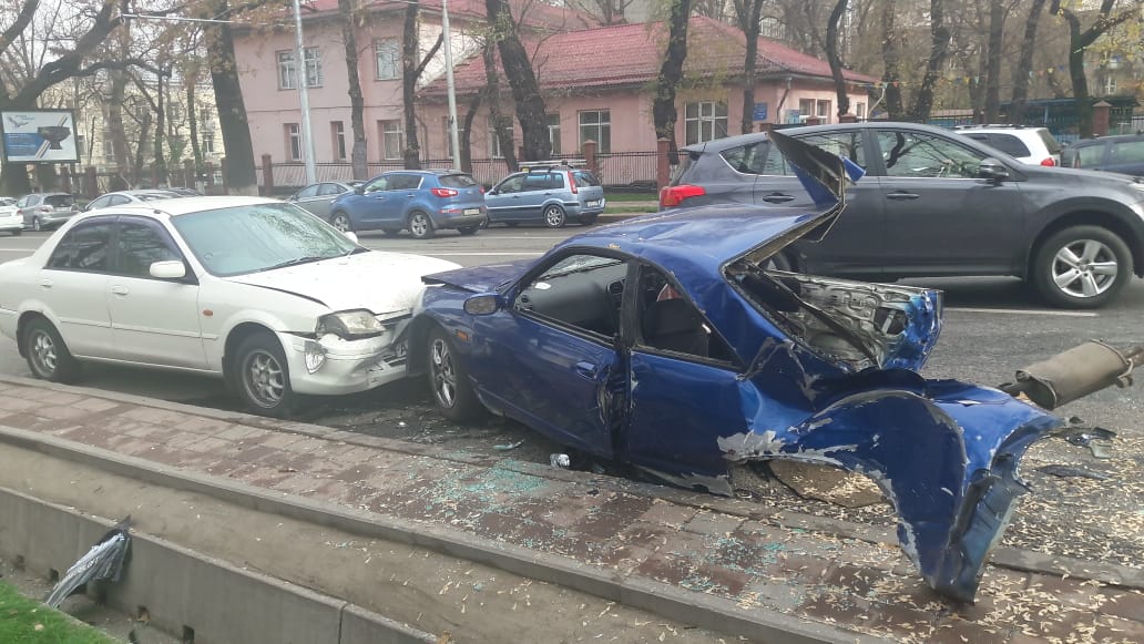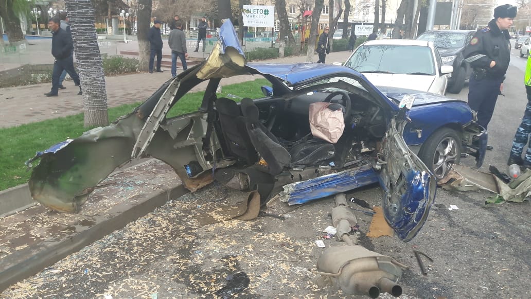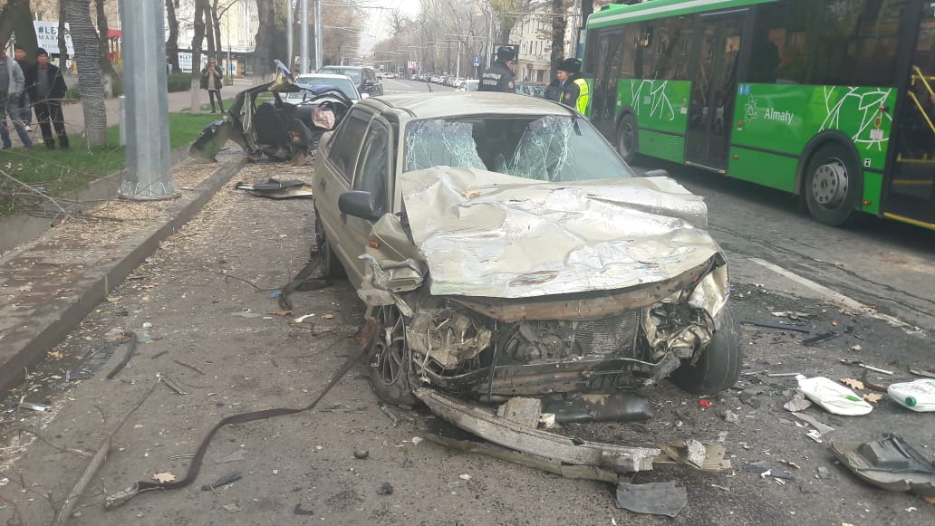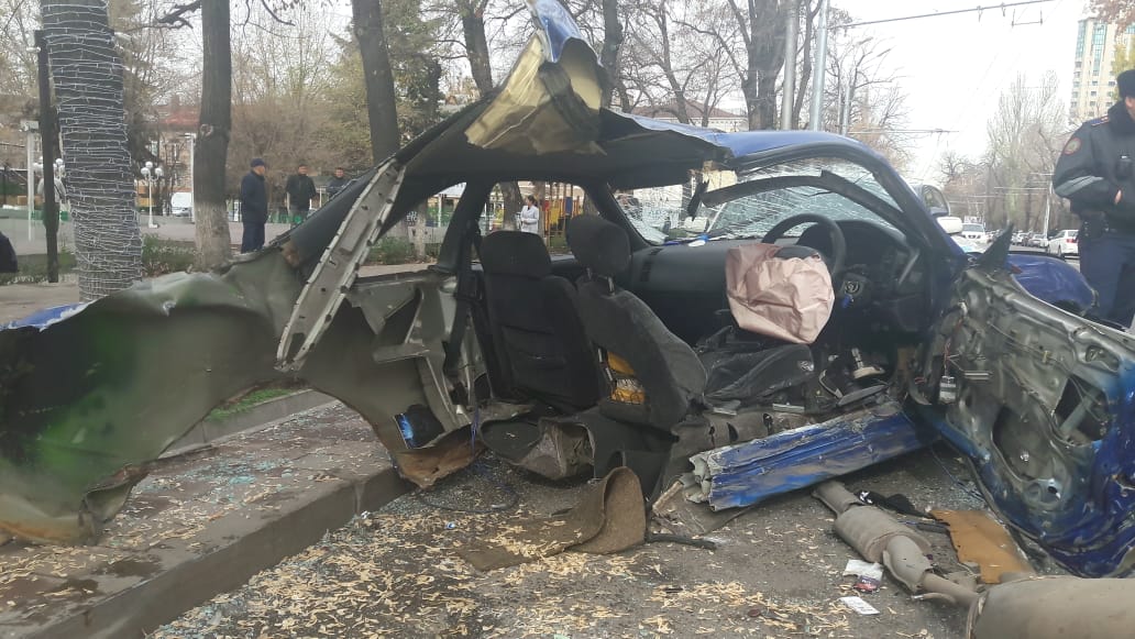 От удара машину разорвало на части: жуткое ДТП в центре Алматы
