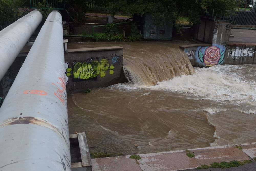 Уже сутки в городе идет дождь, его последствия не столь разрушительны, но весьма ощутимы. Сегодня около двух часов дня из берегов вышла река Большая Алматинка. Редакция ИА Total.kz решила проверить последствия суточного ливня.