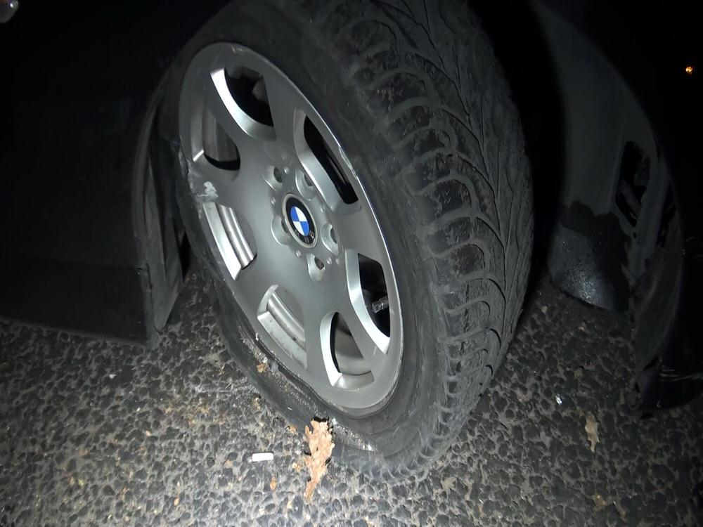 Водитель автомашины BMW, не заметив бордюр, перескочил его, в результате чего взорвались три колеса, а также помялась нижняя часть машины. В результате случившегося никто не пострадал.