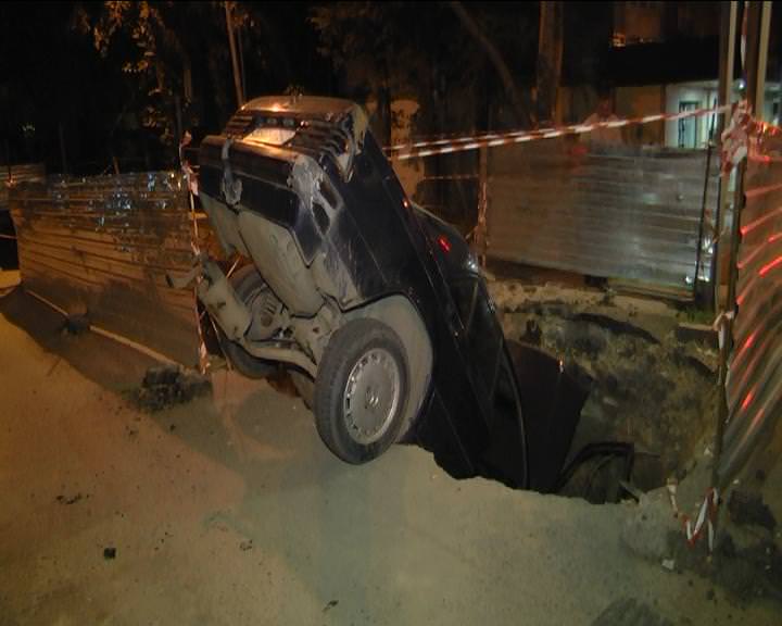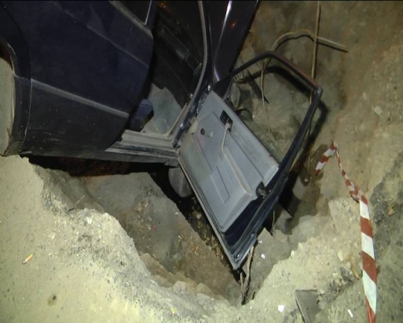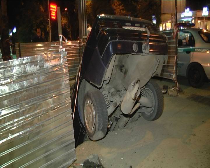 ДТП в Алматы: автомобиль провалился в траншею (ФОТО)