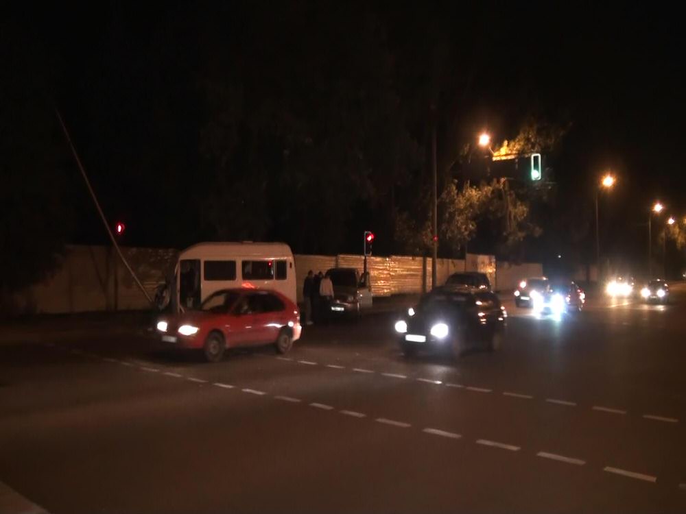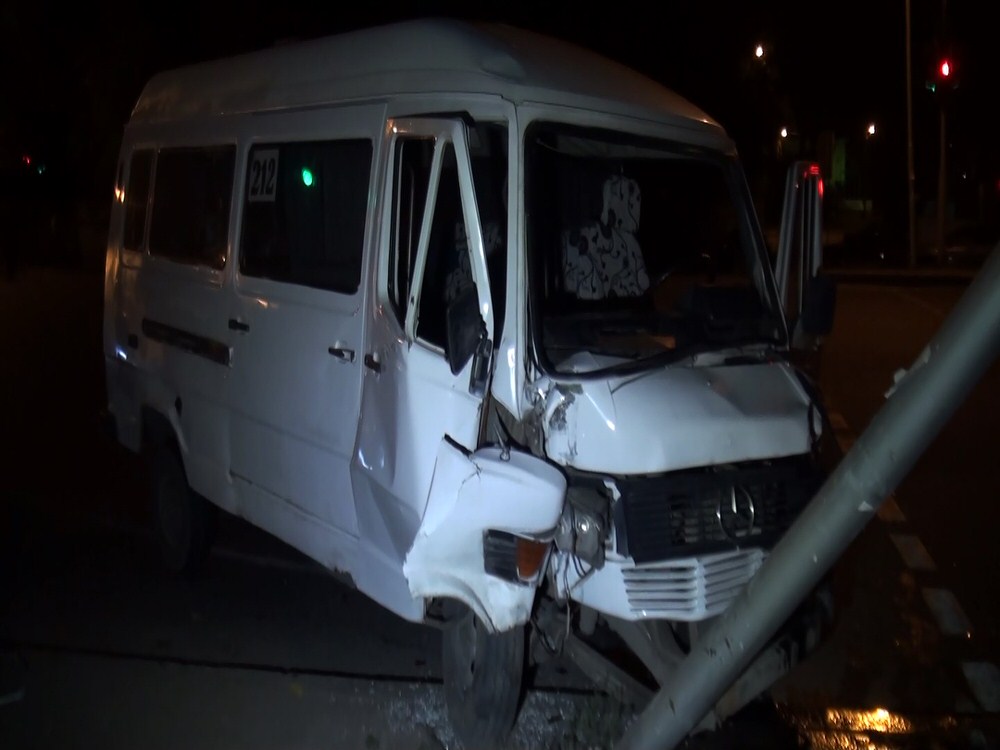 Водитель иномарки Mitsubishi двигался по улице в северном направлении. Остановившись на светофоре, планировал совершить разворот, в это время маршрутка выехала на встречную полосу и врезалась в иномарку. От удара джип развернуло, а микроавтобус влетел в столб.