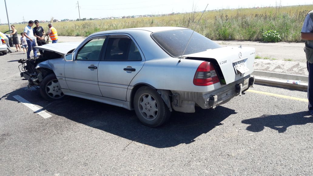 Кроме того, метров через 200 Мерседес класса Е также перелетел на «встречку» и остановился. Выяснением всех обстоятельств занимается полиция Алматы.