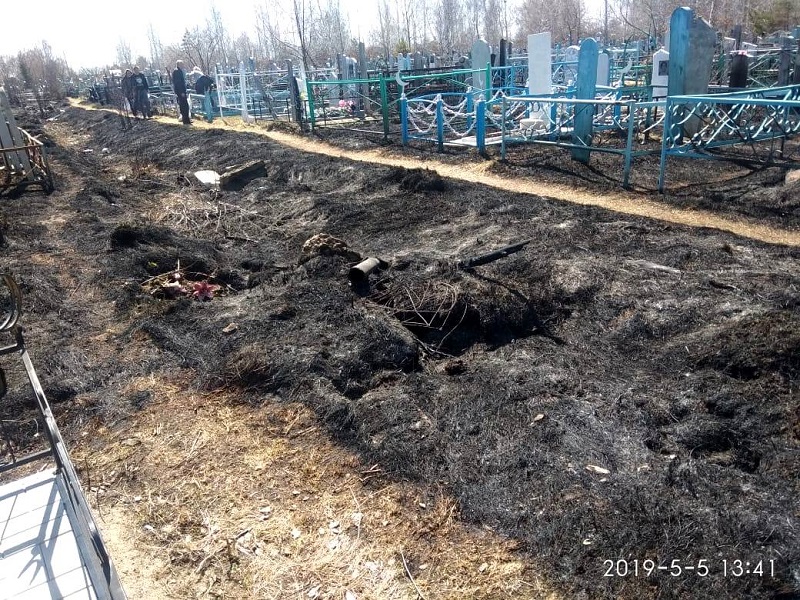 Отмечается, что особенно пострадали могилы, где были деревянные кресты, сгорели венки, обгорели оградки и памятники. Жители Петропавловска ежегодно жалуются на горы мусора на кладбищах, сообщают также, что не в первый раз находят обгоревшими.