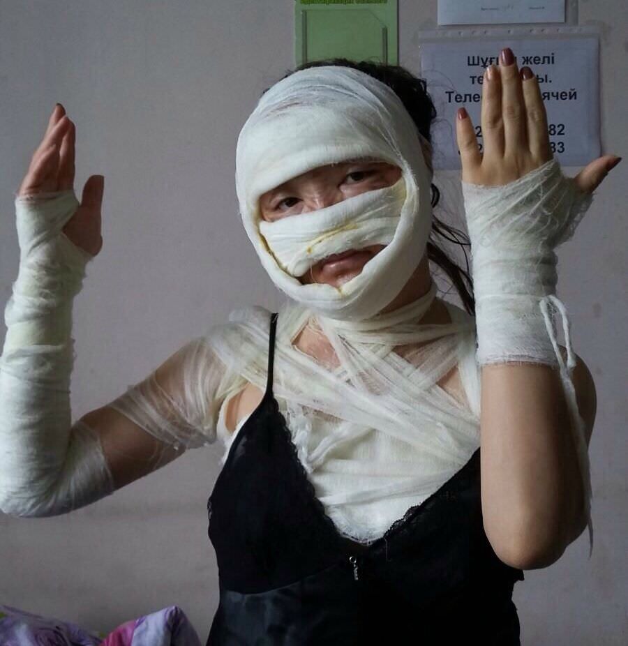 В комнате кроме жены и мужа были две девочки - ни одна из них не пострадала. Основная часть ударной волны пришлась на мать. Асель получила множественные ожоги лица и верхних конечностей. С тяжелыми травмами женщина была доставлена в одну из больниц города: «Скорая помощь отвезла меня в травматологию, но не в ожоговый центр. Врачи были растеряны, и несколько дней пичкали антибиотиками. У меня малышка на грудном вскармливании. Что делать?! Я добровольно выписалась из больницы. Лечусь самостоятельно. Врачи не сказали, сколько времени займет восстановительный период. И что теперь будет, с моим лицом», - рассказывает растерянная женщина.