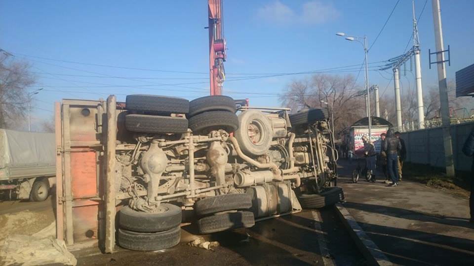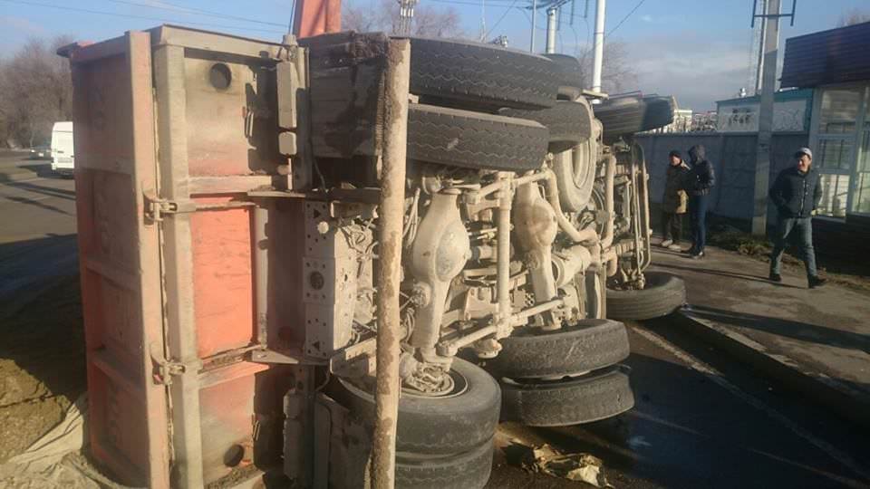 Со слов очевидцев, автомашина Лада-Калина двигалась в южном направлении по Шемякина. Несмотря на то, что в этом месте разрешен только поворот направо, ее водитель решил проскочить прямо. Грубо нарушив правила дорожного движения, он выскочил на Рыскулова, где в западном направлении ехал КамАЗ, гружёный песком. Водитель грузовика, пытаясь избежать столкновения, резко вывернул руль вправо, в результате чего большегруз опрокинулся. А в довершение ко всему в него врезалась Лада-Калина.