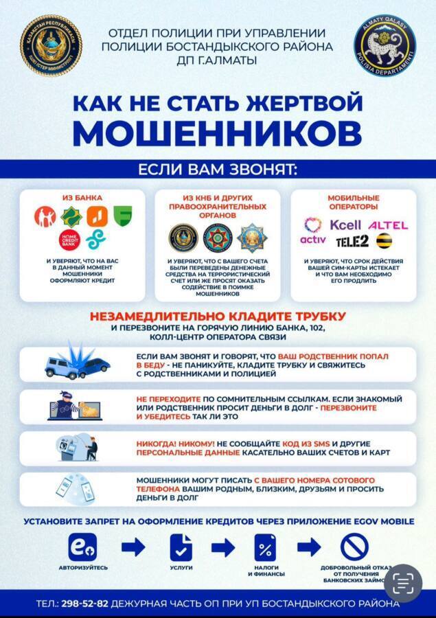 «К сожалению, преступность не стоит на месте: с каждым днем она обретает новые формы и методы. Увеличилось количество мошенничеств, совершаемых посредством интернета. В первую очередь это связано с тем, что граждане ограничили контакты, даже при сделках купли-продажи имущества. Удобнее стало делать это онлайн. Но, как показывает практика, такая форма не всегда безопасна. Увы, мало кто осознает проблемы информационной безопасности своих персональных данных, и, как следствие, не соблюдает меры предосторожности», — отметил начальник отдела полиции при управлении полиции Бостандыкского района Мухамедали Сейсенулы.