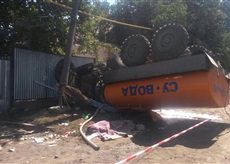 Водитель водовоза не справился с управлением, в результате чего машина перевернулась и упала на троих людей. Один человек скончался на месте. Двое доставлены в ближайшую больницу в тяжелом состоянии.