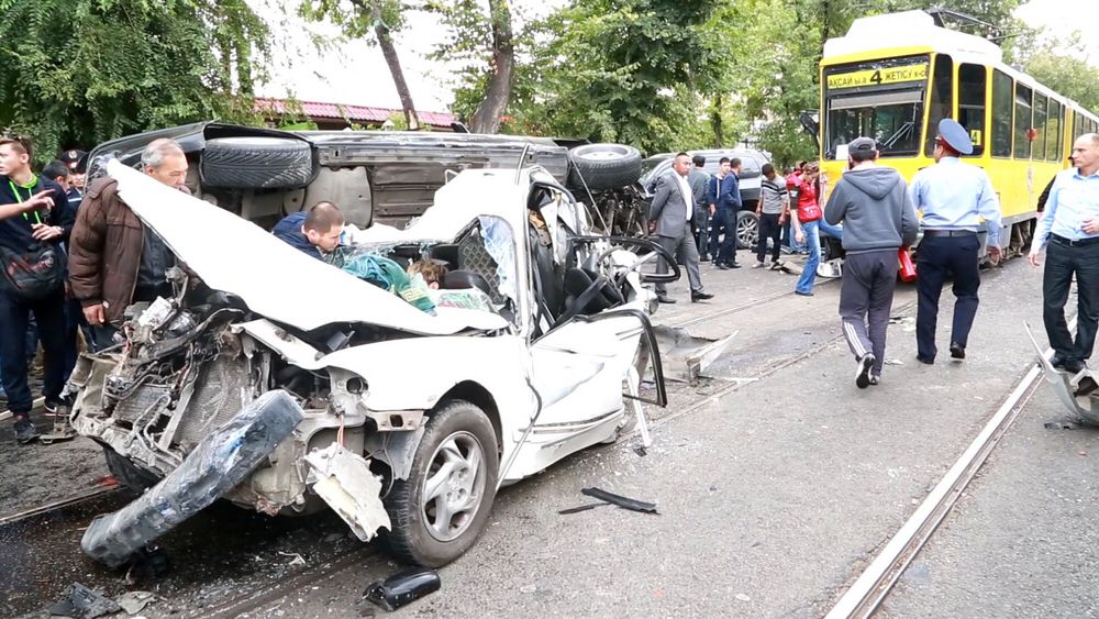 Трамвай в Алматы снес 14 автомобилей, есть пострадавшие (ФОТО, ВИДЕО)