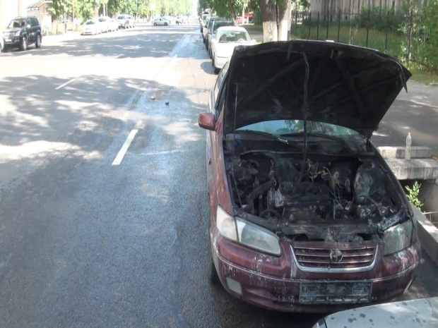 В центре Алматы по адресу угол улиц Наурызбай батыра и Шевченко загорелась автомашина Toyota Camry.