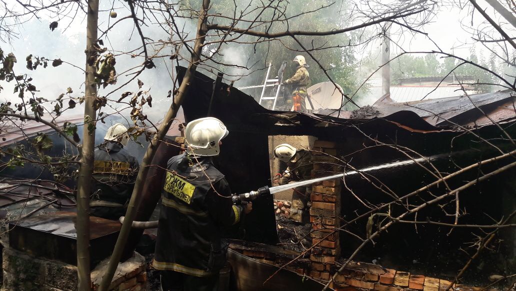 Со слов очевидцев, был слышен взрыв. По предварительной версии, взорвался газовый баллон. Причина пожара уточняется.