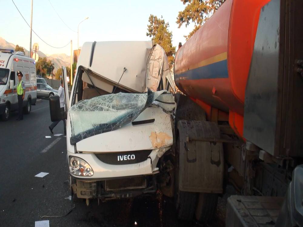 В Алматы микроавтобус врезался в «КамАЗ» [ФОТО]