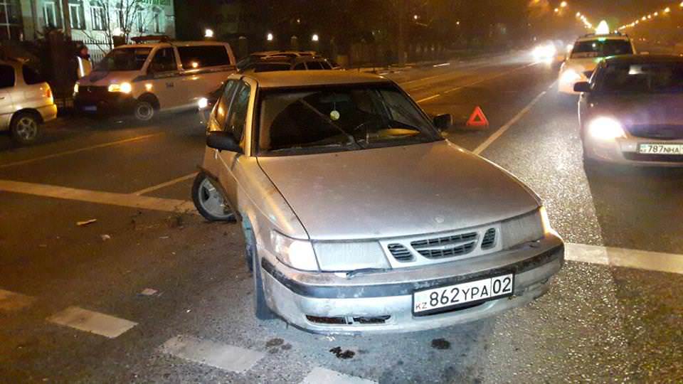 Со слов водителя автомобиля «Сааб», он стоял на перекрестке, ожидая разрешающий сигнал светофора. И тут в него сзади на полном ходу врезалась автомашина «Тойота Камри», следовавшая в северном направлении по Утеген батыра.