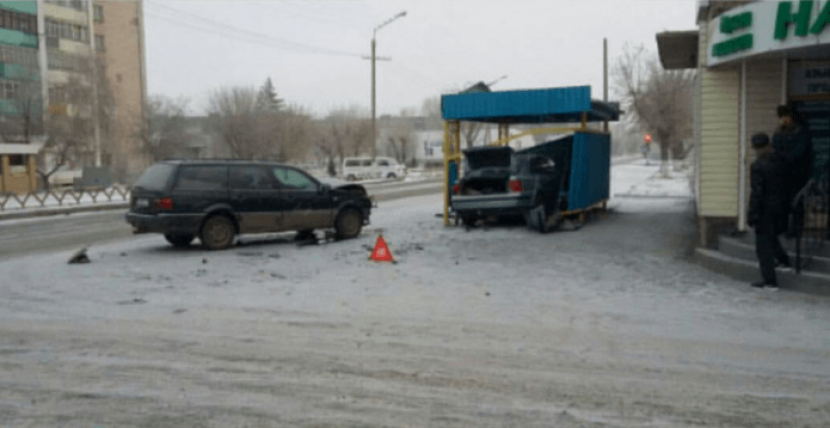 По данным служб экстренного реагирования, водитель автомашины Volkswagen Passat B4, двигаясь на высокой скорости, врезался в автобусную остановку, расположенную на углу улиц Машхур-Жусупа и Горняков.