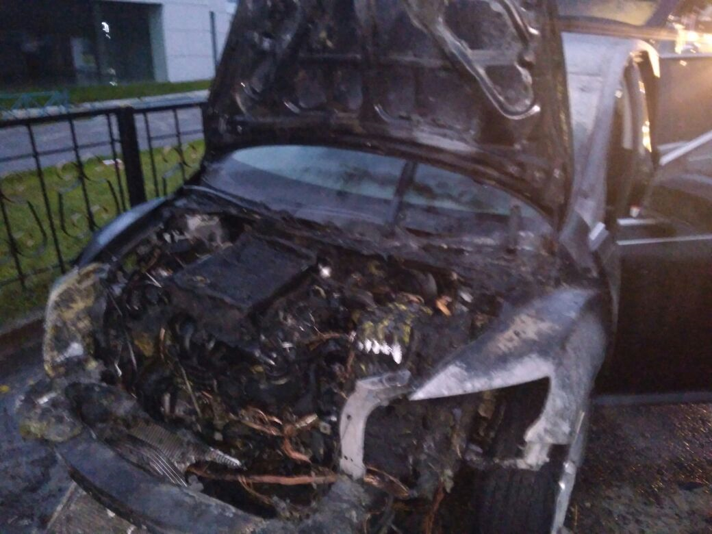 Прибывшие на место пожарные потушили машину. В машине сгорел моторный отсек.