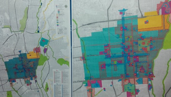 План-схема центра г. Алматы (голубым цветом отмечена зона, которую общественники предлагают утвердить, как «историческое ядро» города)