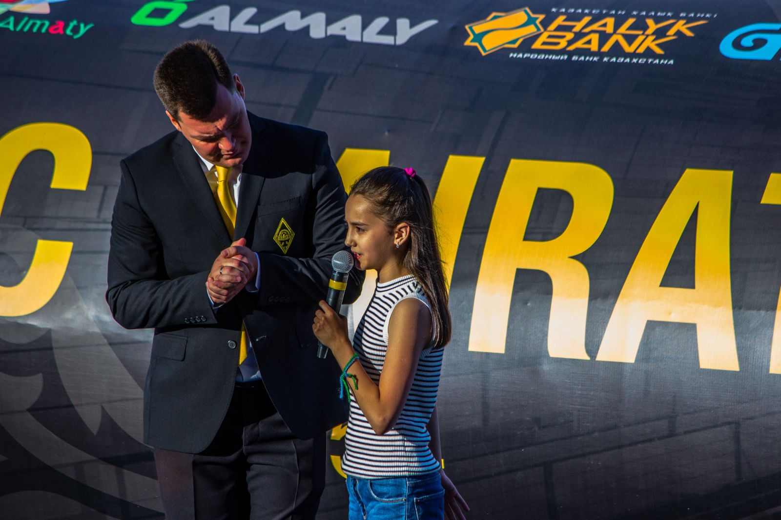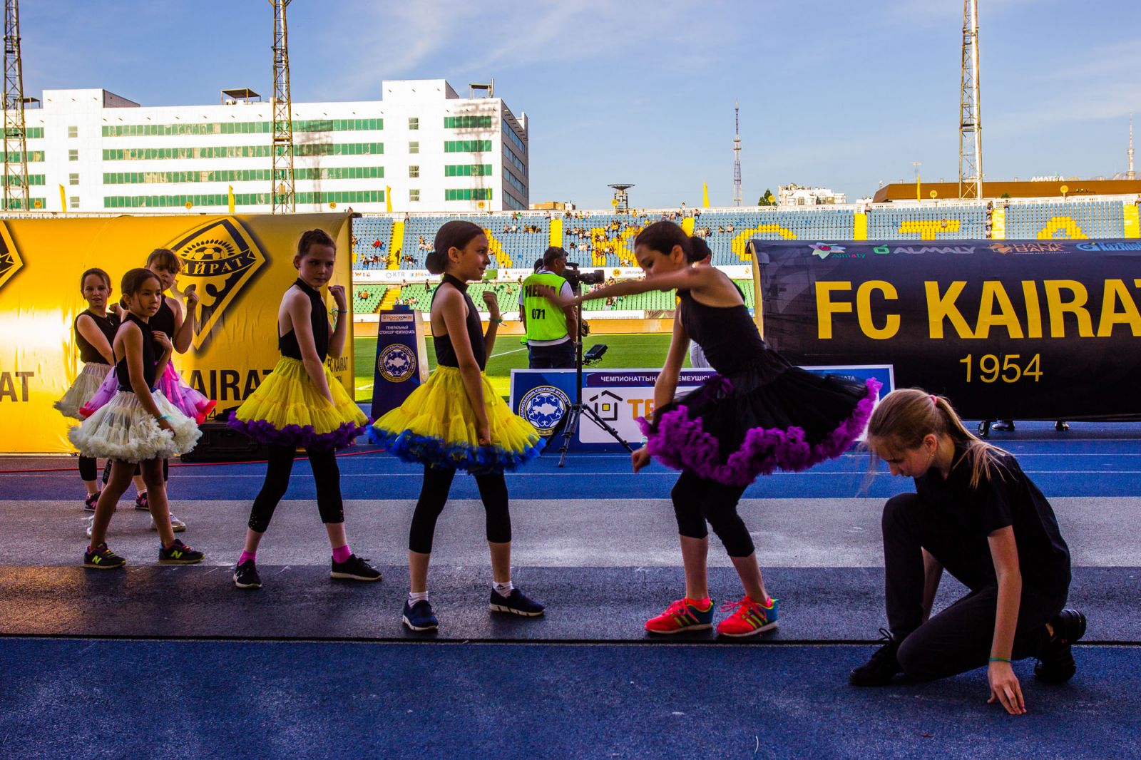 На поле Центрального стадиона дети вышли перед началом матча, чтобы поприветствовать болельщиков и пожелать удачи командам. Под официальный гимн проекта «Футбол для дружбы» юные танцоры студии «MIX» исполнили зажигательный танец, пока воспитанники футбольной академии клуба «Кайрат» проносили по стадиону флаги команд. Примечательно, что в составе танцевальной группы на стадион вышла внучка легендарного тренера ФК «Кайрат», легенды казахстанского футбола Тимура Сегизбаева – Рената.