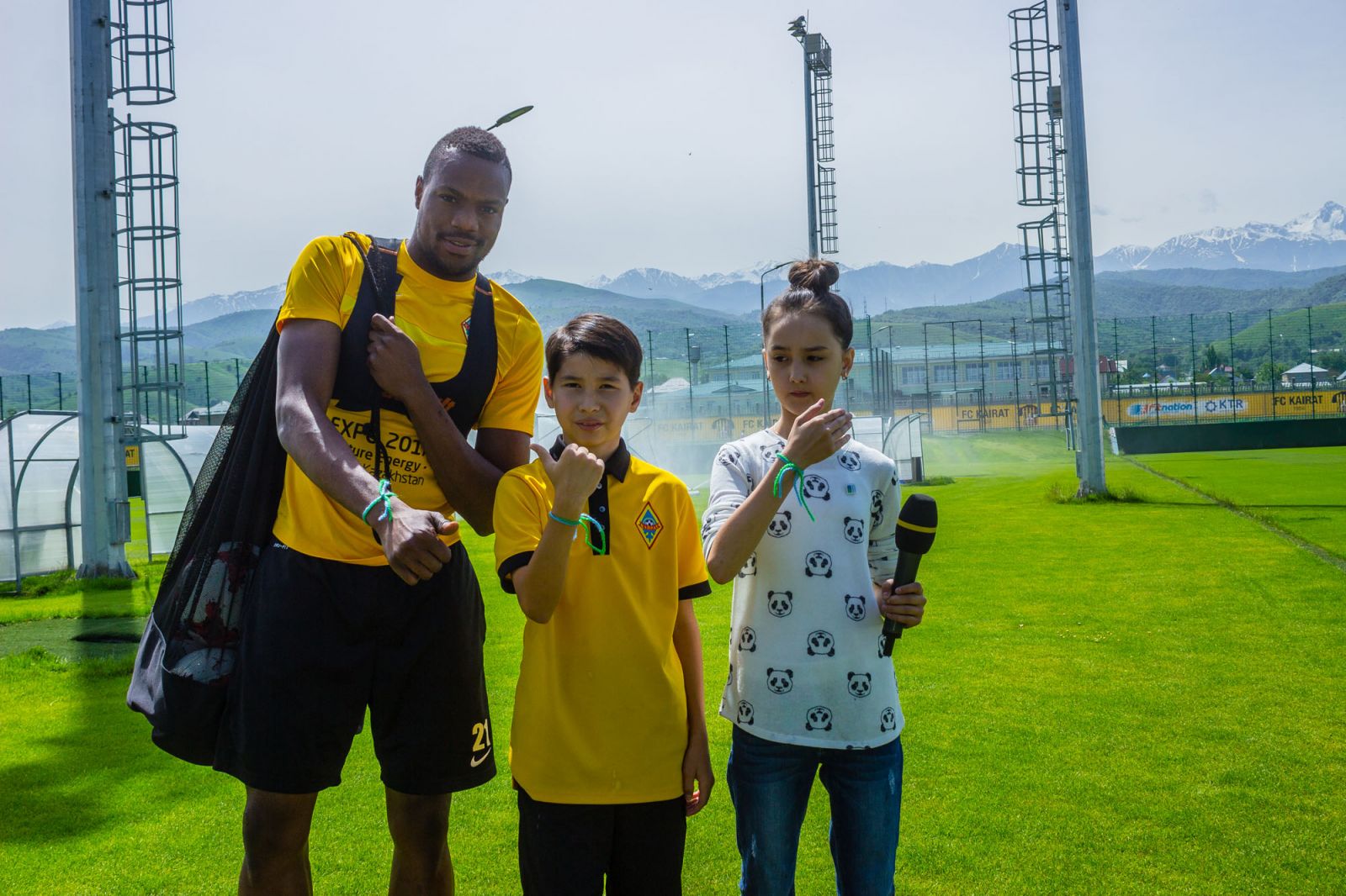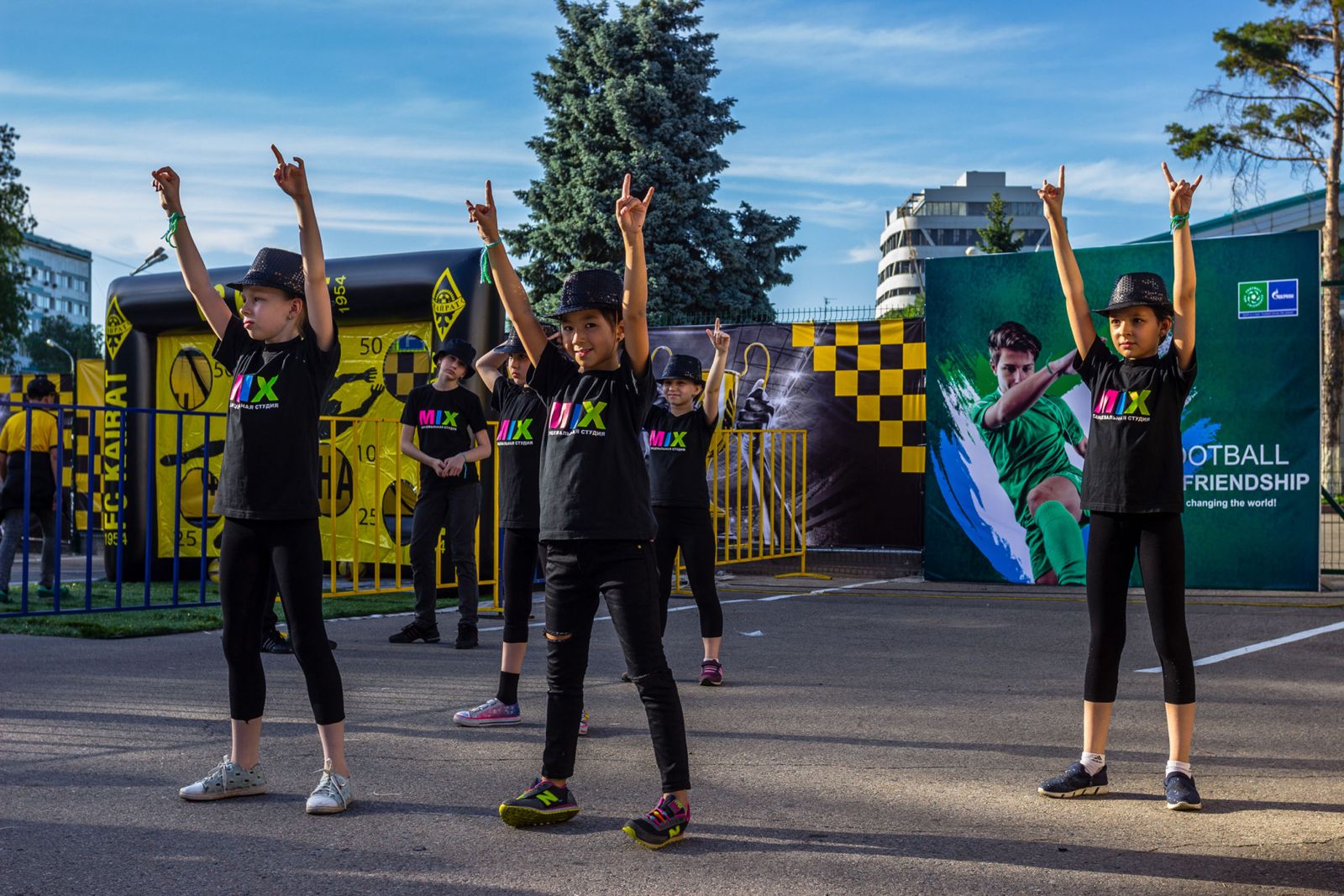 В Алматы День футбола и дружбы прошел перед матчем ведущих казахстанских команд «Кайрат» - «Шахтер». Амбассадор проекта юный журналист Аделина Касенова, юный воспитанник Академии ФК «Кайрат» Бахытберген Бейсенбек и дети из танцевальной студии «MIX» приняли участие в торжественном открытии фан-зоны алматинского Центрального стадиона.