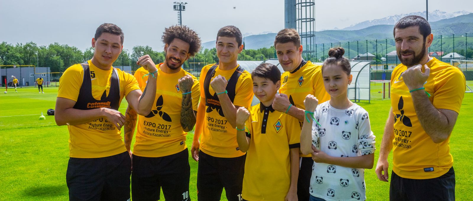 Юные амбассадоры Казахстана в День защиты детей встретились с футболистами на базе ФК «Кайрат».