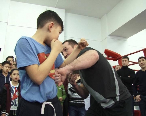 Такого мастер-класса юные казахстанские спортсмены еще не видели. Лебедев рассекретил коронный удар Геннадия Головкина, а также учил ребят английскому языку и правильному произношению боксерских терминов.