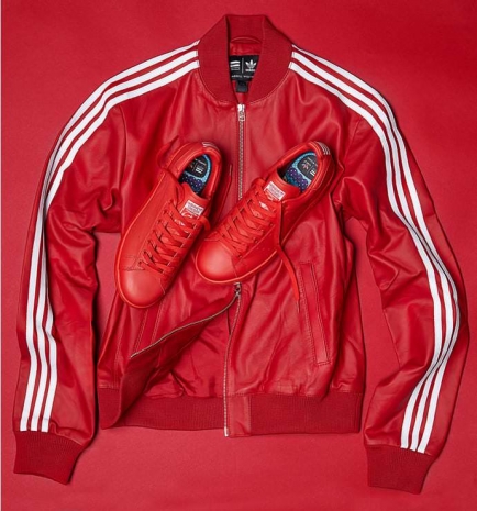 В начале этого года спортивный бренд adidas Originals объявил о коллаборации с Фарреллом Уильямсом, рассказывает Elle. В конце сентября были представлены первые результаты их совместной работы: капсульная коллекция «Solids» Pack, в которую вошли три однотонные олимпийки модели «Superstar» из синей, красной или черной кожи, и три пары кожаных кроссовок «Stan Smith» аналогичного цвета.
