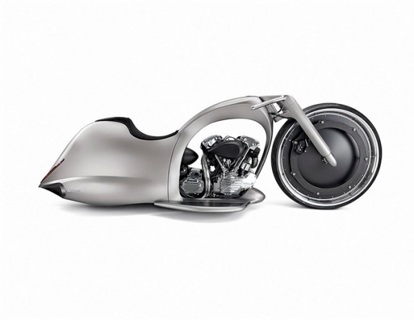 Мотор тут – 1524-кубовый, производства S&S, типа V Twin. А если посмотреть на заднюю часть мотоцикла сверху, то она будет немного напоминать морду акулы.