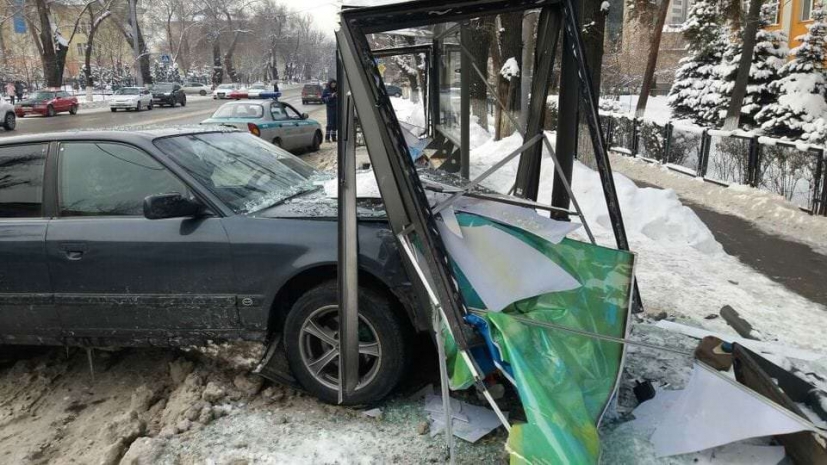Автомашина Audi врезалась в остановочный комплекс в Алматы