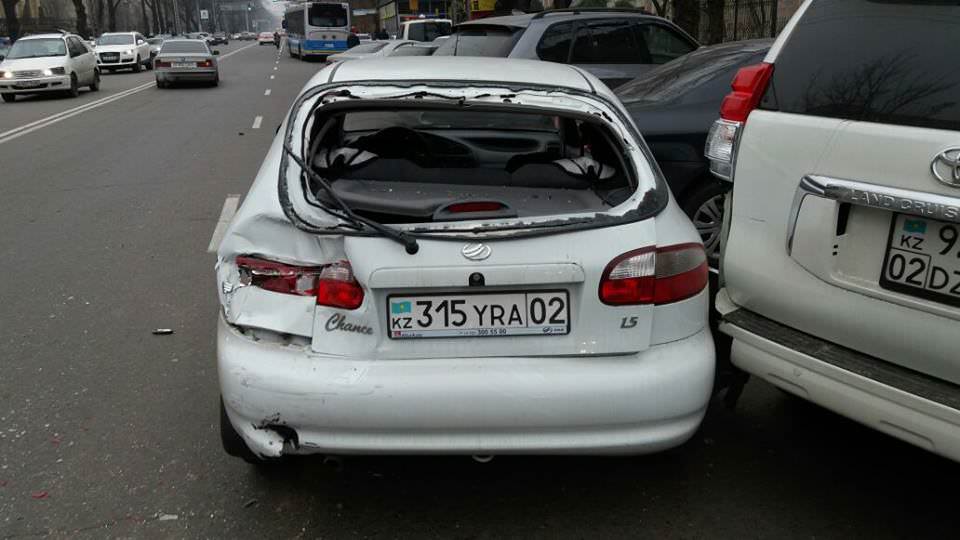 По словам очевидцев, мужчина стоял на обочине дороги и пытался остановить такси. В южном направлении по Ауэзова двигался автомобиль ЗАЗ Chance. Его владелец, видимо решив подвезти голосующего пешехода, резко нажал на тормоза. Водитель следовавшего позади 12 троллейбуса не успел затормозить и на полном ходу врезался в ЗАЗ Chance.